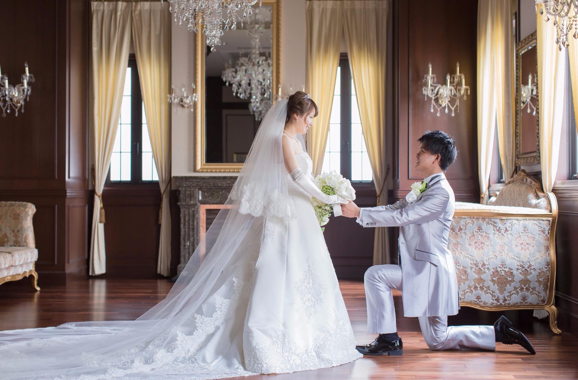 ウェディングドレスを着て、まるでお姫様の様な素敵な写真をたくさん残されたお2人。王子様がプロポーズをする様なカットや、花嫁様お1人での可愛らしいカット、さらに愛犬とのカットなど撮影されました!