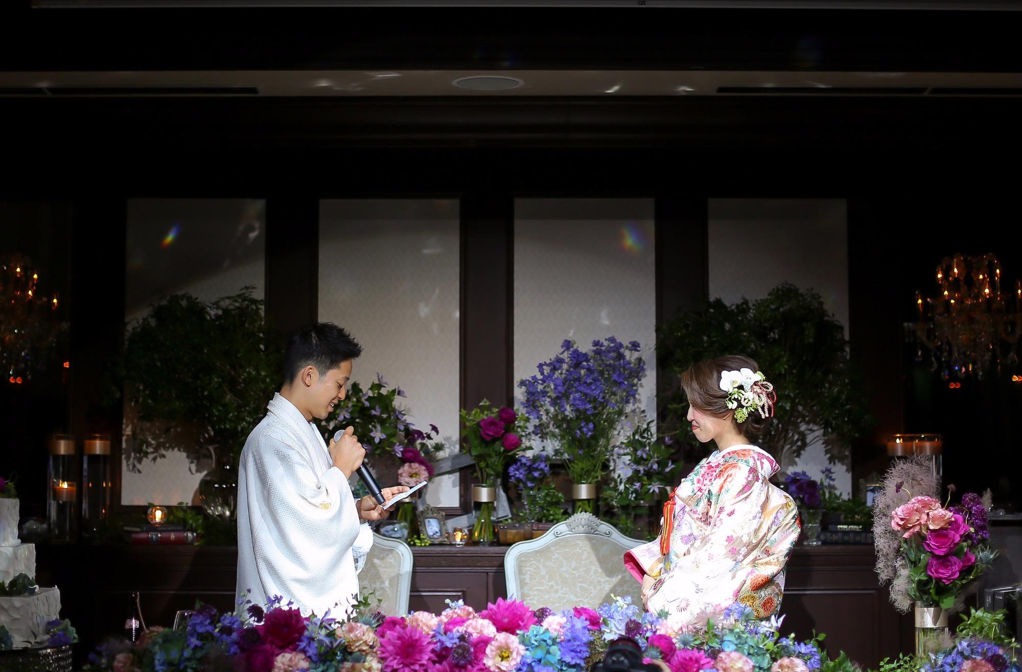 ご新郎様が花嫁様へはサプライズでご準備されたイベント。 ご新郎様が花嫁様の大切な家族やご友人、職場の方々からメッセージを集め、アルバムに仕上げてプレゼント。そして、大勢のゲストの前で「これからも幸せにします」と、愛のメッセージを捧げました。 堂々とした姿は、とても凛々しく愛情に満ちていました。