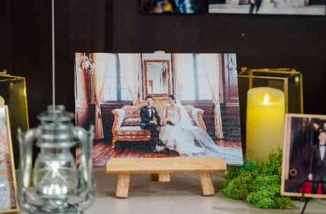 ゲストをお迎えするアイテムとてウェルカムグッズを設置される方が多いです。 パーティー会場の待合場所に前撮りで撮影したお2人らしい写真を飾ることで当日以外の新郎新婦の雰囲気も楽しんでいただきました。 お写真以外にも、お2人の共通の趣味のものやお2人らしさが出るアイテムをお飾りすることでゲストの皆様も想い出に残るワンシーンになります。