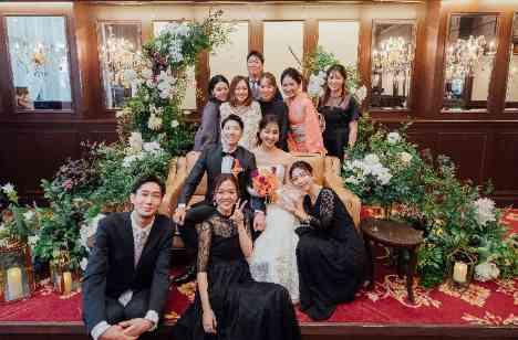 挙式の後は披露宴です。 披露パーティーでは、改めてご参列いただいたゲストの皆様とお話が出来る歓談のお時間も必要です。 また、新郎新婦のお席をテーブルではなくソファにすることでドレス全身が見えやすくなり、記念撮影もこだわりのフラワーコーディネートでより一層華やかになります。 仲の良い友人に囲まれ最高の時間を楽しみましょう。