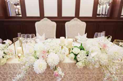 たいせつなゲストをお迎えするために新婦がこだわった装花やテーブルコーディネート。打ち合わせをして一旦決まりかけていたものの、よく考え直してもう一度打ち合わせの場を設けてもらいました。そしてじっくり話し合った結果、最初に決まりかけていたものから大きく方向転換し、最終的に心から納得できる会場に仕上がりました。