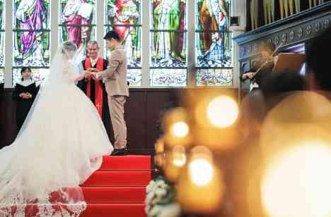 結婚式場の決め手は美しいステンドグラスと生演奏。当日も挙式が始まる前から演奏が入り、おもてなしの心を感じたと列席の方々も喜んでいました。バージンロードは兄と歩きました。色鮮やかなステンドグラスの光、温かな拍手に包まれて感動の一時でした。THE王道の教会式だからこそ感じられる厳かさ、一生の思い出です。