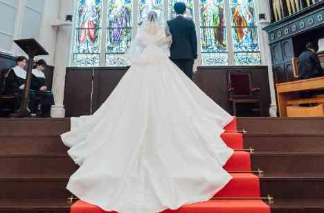生演奏とステンドグラスに惚れた教会で挙式