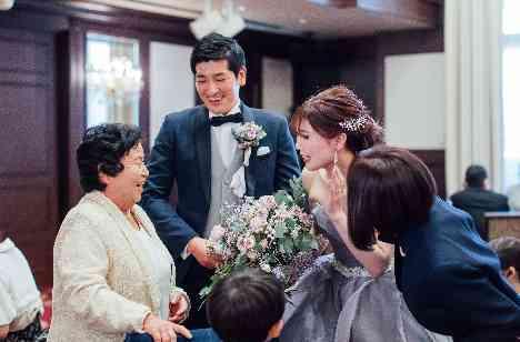 お越しいただいたゲストの皆様に感謝の気持ちをもってご挨拶回りに。 そんな素敵な思いでキャンドルサービスが行われました。 お二人らしい上品な会場が少し暗くなり、キャンドルの明かりに包まれます。 ゲストの皆様も一つ一つのテーブルを回られるお二人と近い距離でお過ごしいただき、会場に温かな時間がながれました。