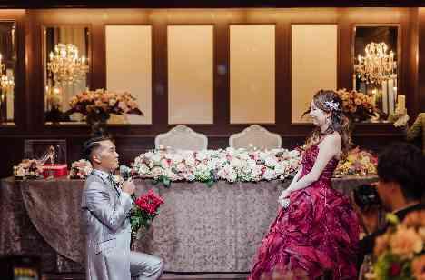 ゲストの皆様にもご協力いただき行われダーズンローズセレモニー。 あの時伝えきれなかった思いを込めて、リベンジプロポーズを行われました。 花嫁様の満点の笑顔と少し照れた表情に、会場も幸せの空気に包まれました。