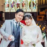 教会のステンドグラスは圧巻。また、パーティー会場もシックさとアットホームな雰囲気が両立されており、特別感はありつつも落ち着ける。