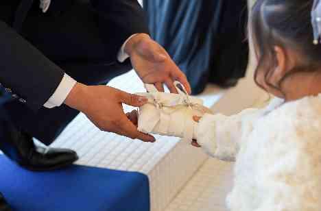 ゲストの方のお子様にお手伝いしていただくセレモニーの中で、お二人の結婚指輪を持ってきてもらう人気のリングガール&リングボーイ♪お二人はできるだけ皆様に参加してほしいという事で、リングガールとしてお手伝いしてもらいました!リヴァージュブランの青いバージンロードを一生懸命お二人の元へ指輪を届けてくれる姿は愛らしく、微笑ましいセレモニーとなりました!