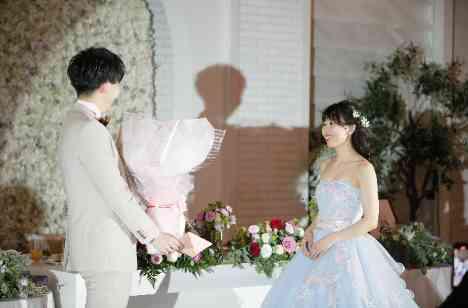 何ヶ月も前からサプライズをお考えだった新郎様。新婦様へお手紙と100本のピンクのバラの花束をご用意されました♡花束を持って登場された新郎様に新婦様は感動!サプライズ大成功♪ご親族もご友人も感動につつまれた空間となりました。ピンクのバラの花言葉は『愛の誓い』、また100本のピンクのバラの花束には『100%の愛』という意味もございます♡本当におめでとうございます!
