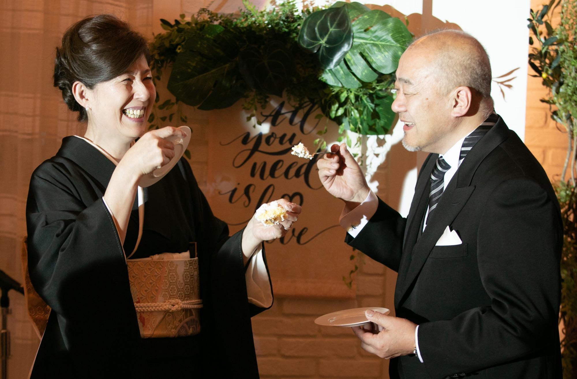 結婚式当日、実は新郎様のご両親の【結婚記念日】だったのです!お打合せの時に何か出来たらと話し合い、ケーキ入刀して、おふたりのファーストバイトを行った後、サプライズバイトをすることにしました♪当日ご両親はもちろん驚きでいっぱい!少し照れくさそうなご両親でしたが、新郎様からのサプライズには喜んでいただけたようです!