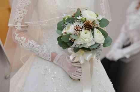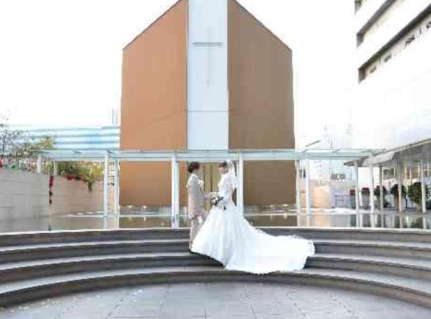 12月限定でチャペル内にはかわいいクリスマスツリーが登場。 白を基調にしたシンプルなチャペル内に華やかさがプラスされます。 また、バージンロードにもリースが施されます。外のガーデン演出の際はあたたかいケープを着用され、チャペル内とは違った姿で登場されました。 冬らしいのお衣装チェンジで雰囲気を演出いただけます。