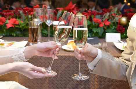 12月はホテル館内もチャペルもクリスマス一色になるためこの季節ならではのウエディングが可能に。 ホテルに足を踏み入れた瞬間からツリー、音楽、装飾と華やいだ雰囲気に囲まれます。クロスや会場のお花、ブーケなどクリスマスカラーで統一されていて、ご参列者様皆様の思い出に残るのクリスマスを過ごしていただけました。