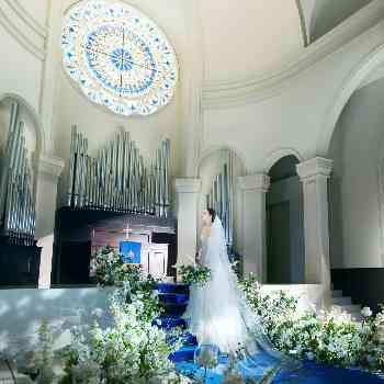 \駅徒歩5分で叶う/大聖堂での感動挙式!誰もが羨む!純白のウェディングドレスがロイヤルブルーに映える