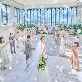 - 挙式の後は「全天候型アトリウム」でゲストからの祝福が飛び交うフラワーシャワーが!天候の心配は一切なし