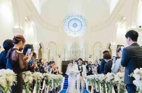 [印象的な青いバージンロード]