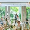 【自然光が満ちる開放的なガーデン付会場】階段入場やシェフのライブパフォーマンス、家族や大切なゲストとで過ごす1組貸切のパーティを体験。鮮やかな緑に包まれた空間で、おもてなしの一日を