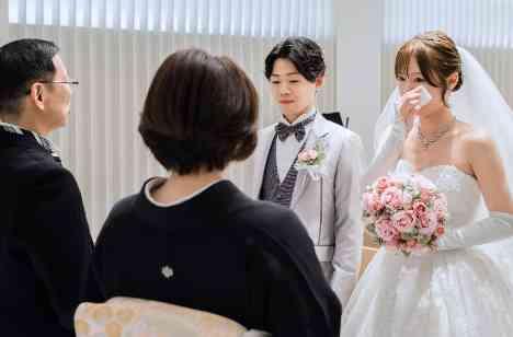 貸切だからこそ叶えられる、【ご家族だけ】の大切なお時間をお過ごし頂く事ができました。本番を迎えるまでずっと内緒にしていたウェディングドレス。ドレス姿を一度も見たことがなかった新郎様は緊張しているご様子でした。チャペルで待つ親御様へ初めてドレス姿を披露したシーンは、お2人の思いが溢れ感動的な1シーンとなりました。