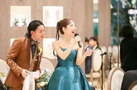 ご披露宴はおふたりのご希望通り ゲスト様とのご歓談やお写真撮影を楽しまれたおふたり。花嫁が自らマイクを持ち、ゲストも巻き込む笑顔の演出を実施!自然光がたっぷりと降り注ぐ開放感あふれるパーティー会場でゲストのリラックス度もばっちり!ふたりの中座中にはゲストも自由にガーデンに出てフォトタイムやカクテルタイムを楽しんだ。