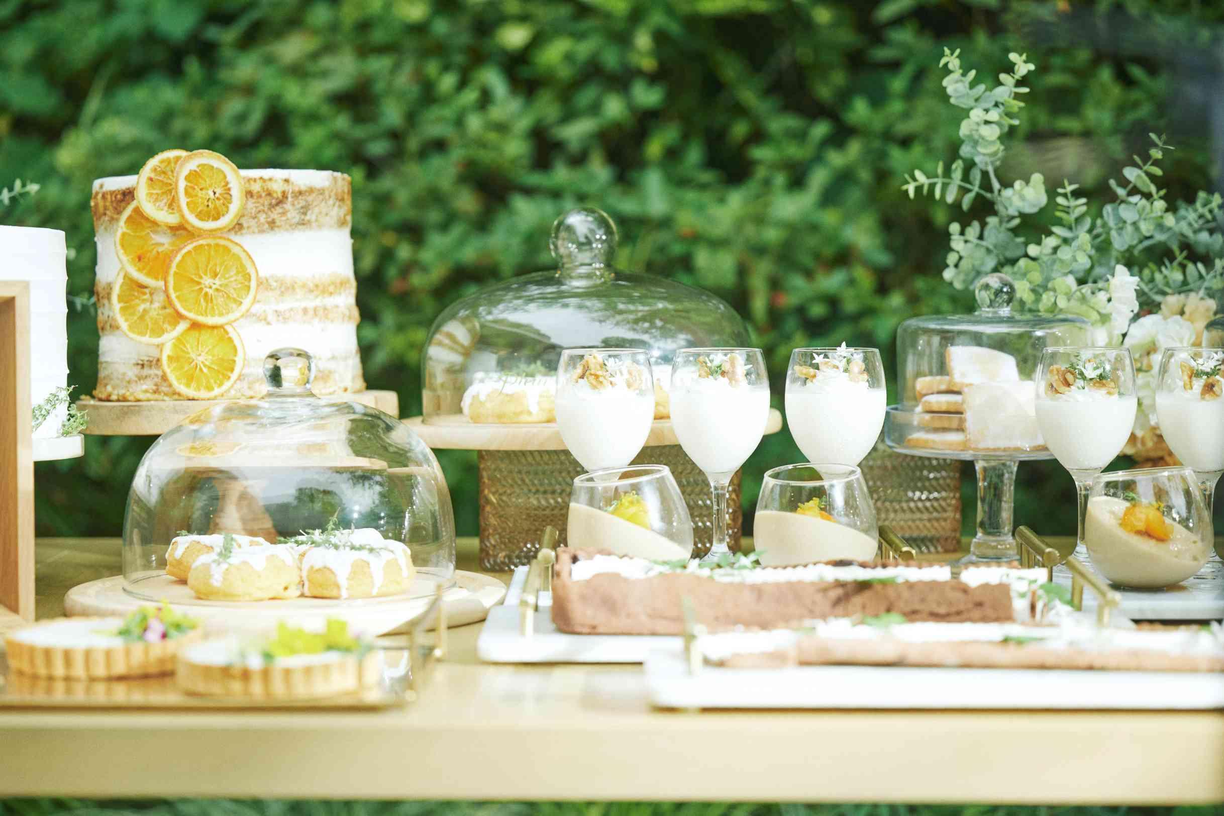 アプローズ専属のパティシエが常駐しているので、ウエディングケーキやデザートもとことんこだわれるのが魅力。お二人のテーマカラーやイメージに合わせた素敵なデザインをご提案します