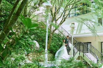 貸切のガーデンではフォトタイムやデザートブッフェも愉しめる。少人数だからこそリラックスした雰囲気が重要というふたりも多いはず。ナチュラルな空間でふたりらしいおもてなしを実現。貸切なので大切な愛犬も特別な1日を一緒に過ごせる。
