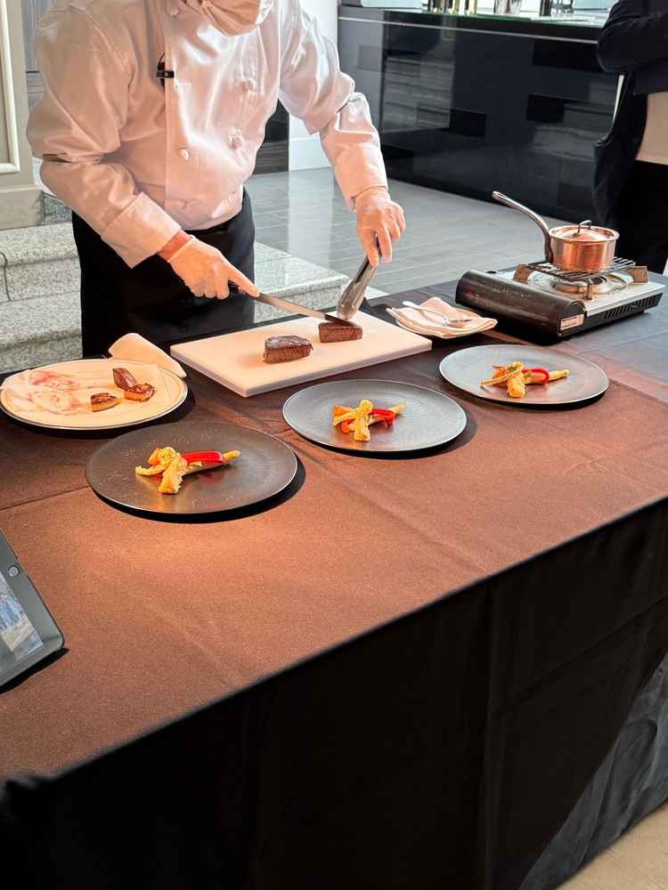 牛とフォアグラのメイン、前菜の海鮮、パンを2種類いただいたのですが、試食なのにお腹がいっぱいになるくらいふんだんに食べさせていただき、とても美味しかったです。