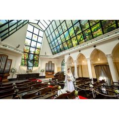 天井一面にステンドグラスが拡がるチャペルでは陽光が差し込む柔らかな光の中、二人とゲストの記憶に深く刻まれる感動のひとときをお過ごしいただけます。