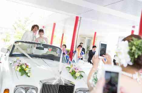 チャペルまでの移動はゲストにたくさんの拍手をいただきながら、ロースルロイスで向かわせていただきました。まるで映画のワンシーンを見ているようなお二人のお姿にゲストからはフラッシュの嵐!お二人にとっても素敵な思い出になっていたら嬉しいです^^