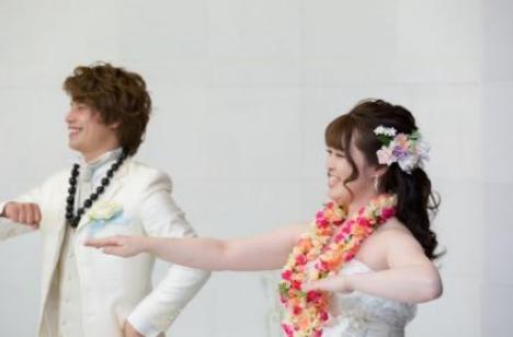 Ayumi様のフラダンスの先生にお越しいただき、ウクレレとフラダンスを披露していただきました!Yuta様も一緒に踊っていただき大変盛り上がりましたね^^貸切りウエディングだからこそのアットホームな雰囲気がとっても素敵で、お二人だけでなくゲストの方も最高の笑顔を見せてくださったのが印象に残っています♪