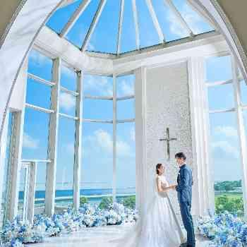 みなとみらい最大級の【空の大聖堂】祭壇からは自然光が差し込み花嫁様のドレス姿をより輝かせる