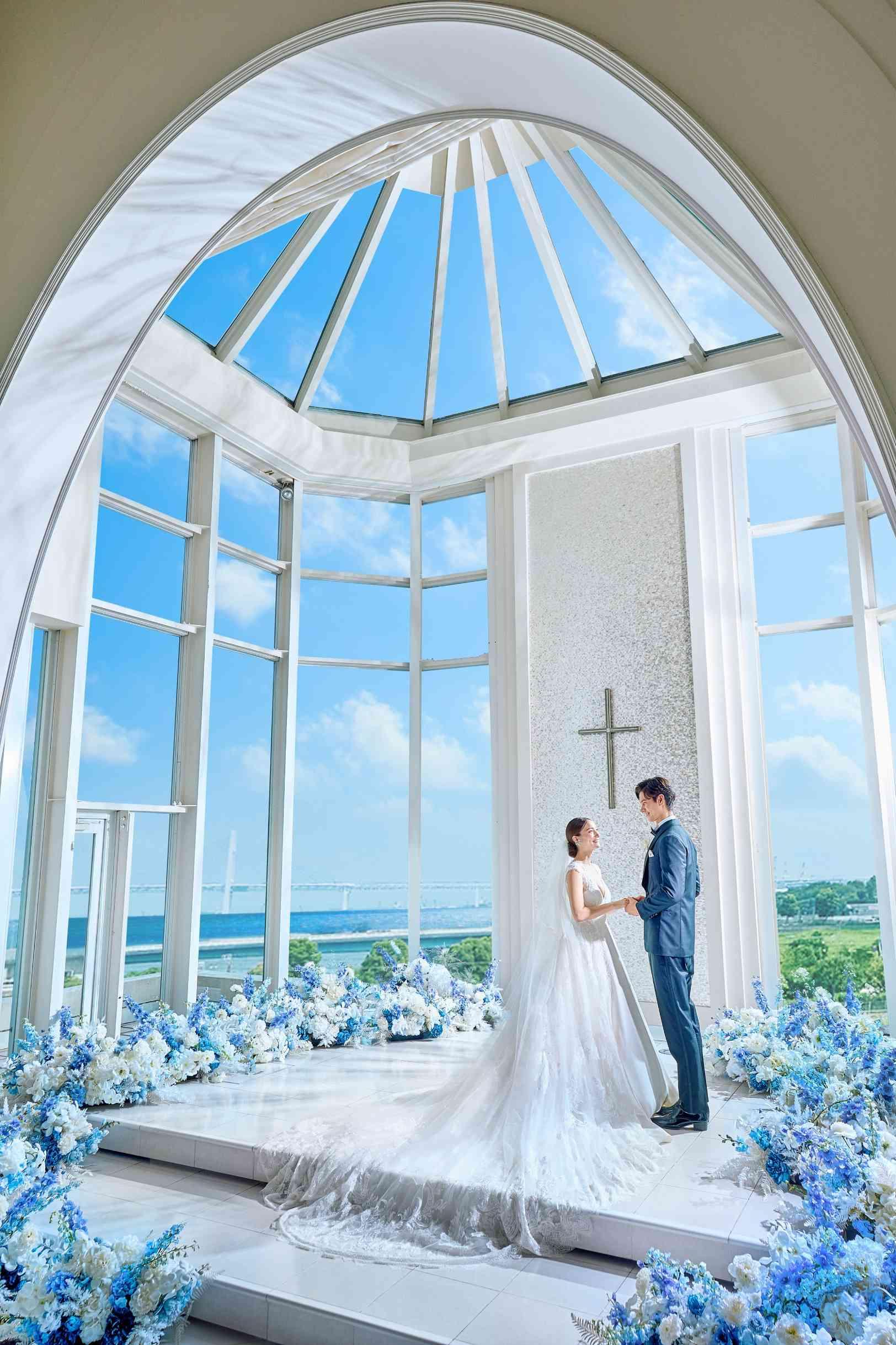 衣装も自社化しているセントグレースでは、式場併設のインナーショップにてドレスの打ち合わせが可能。チャペルと会場を見ながら、ブーケや装飾を考えながら、運命の1着を選べる利便性も兼ね備える