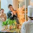 少人数婚だからこそお料理も大切。五感でゲストへおもてなしができるようにオープンキッチンが併設。目の前でお料理を仕上げるからこそゲストへは熱々の出来立てのお料理をご提供。香りも会場中に漂う。更にバーカウンターも併設でおもてなしをお届け。