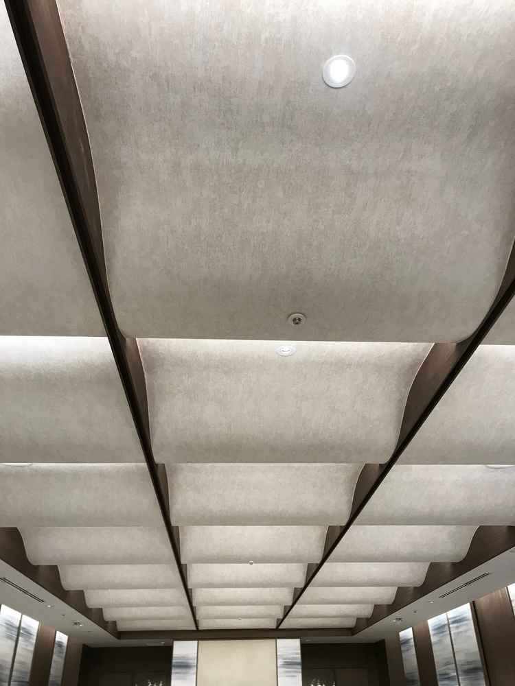 挙式場は、どんなスタイル(キリスト教式、神前式、人前式)にも対応出来るようシンプルな作りで、その他の宗教にも対応出来る可能性もありそうにも思えました。挙式場の天井の波のような形は、人と人とを繋ぐリボンをイメージしたそうで、結婚による繋がりを意識できるものに感じました。