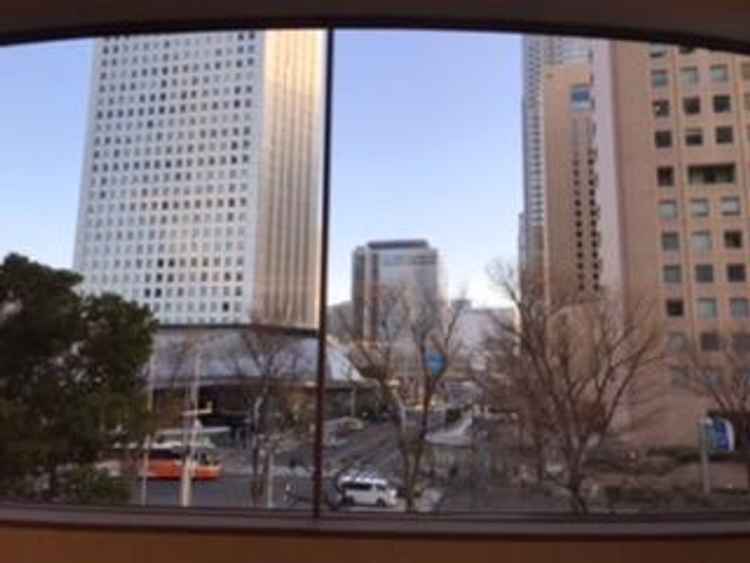 西新宿の都庁近くで、新宿の中では、とても静かな立地で、ネオンや看板が窓から見えないのも落ち着いています。新宿駅まで無料のバスがあり、便利です。