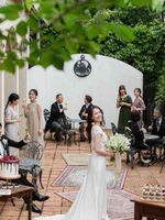 広大な天窓と大きな窓からは自然光が降り注ぎます。風に歌う緑を背景に、ゲストに見守られ2人は誓い合う。シンプルな設えだからこそ、和婚人前式も人気。