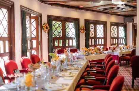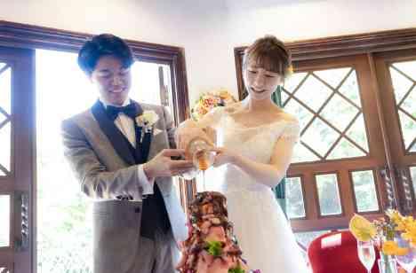 披露宴会場のコーディネートは、新郎様がご意見を出されながら、おふたりで相談してご決定くださいました。 旧クルペ邸のレトロ喫茶のような佇まいに、心惹かれたというおふたり。 また、高砂とゲストテーブルの距離が近く、アットホームにお過ごしいただけることも旧クルペ邸の魅力。 旧クルペ邸の雰囲気を活かしながら季節感を取り入れたワンランク上のコーディネートで、隅々までおふたりの色に染められました。