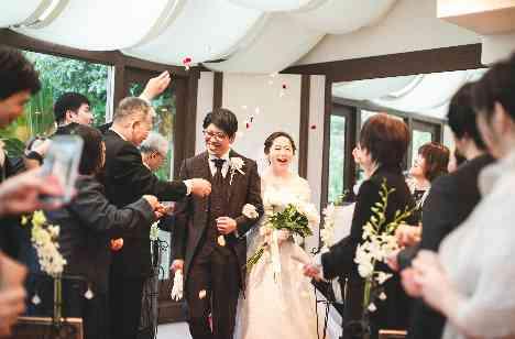 誓いの舞台は、旧クルペ邸のサンルームをリノベーションしたチャペルにて。挙式は、新郎様とゲストによるブーケセレモニーからスタート。祝福の言葉とともにゲストから差し出されたお花を一輪ずつ束ねていき、新郎様のお手元で完成した真っ白なバラのブーケ。新郎様の愛の言葉を添えて新婦様へ贈られました。幸せの願いを込め、これから続いていくおふたりの明るい未来を思わせる、印象深いセレモニーとなりました。