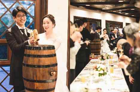 旧クルペ邸にご見学にお越しくださった際、異人館ならではのレトロな雰囲気や調度品が放つ重厚感に魅了されたおふたり。お召し上がりいただいたご試食も決め手となり、この場所に大切なゲストをお招きしたいとお考えくださいました。またワインがお好きなおふたりがご希望されたのは、披露宴にて行う“ワインの樽開き”演出。その演出にぴったりなクラシカルな空間で、おふたりの理想を思い描かれました。