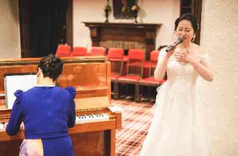 おふたりの人生に欠かせない“アカペラ”。この日のために駆けつけてくださったアカペラグループのお仲間とともに、歌声を披露されました。会場内に響き渡る美しいハーモニーは、ゲストの心を一瞬にして鷲掴み。そして披露宴のフィナーレを飾るのも、新婦様の“手紙”ではなく“歌声”。ご友人が奏でるピアノに乗せた新婦様の力強い歌声に、ゲストも思わず涙した感動のワンシーンとなりました。