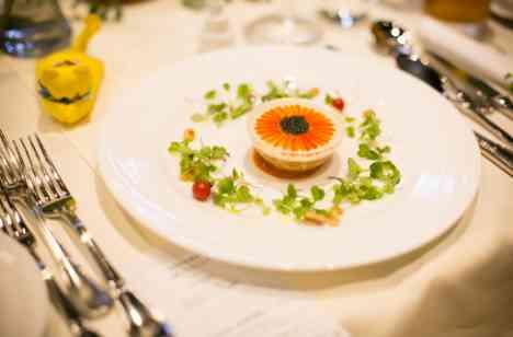 お招きするゲストの顔ぶれを考え、数ある種類の中からコース内容を組み立て、おもてなしがかなうメニューを決められました。オードブルの「海の幸のジュレ~ひまわり~」には、色とりどりの飾り付けをリクエスト。新婦様が和歌山県出身ということで、和歌山県産のみかんといちじくを使ったデザートを振舞われました。おふたりがチョコペンでサインされたノート型のウエディングケーキも、ゲストの皆様から大変好評でした。