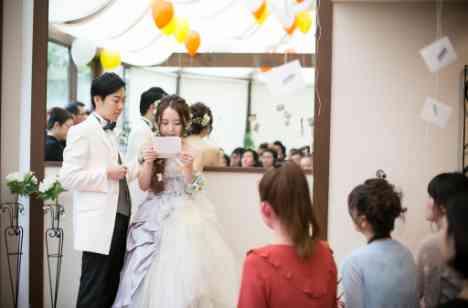 パーティの後半、ゲストの皆差に元々サンルームだった会場内のチャペルへ移動していただきました。おふたりからゲストお一人おひとりに、感謝の気持ちを綴ったお手紙を手渡しに。新婦様の手書きイラストが添えられた心のこもった手紙に驚かれながらも、文章を読んだり、飾られた思い出の写真を眺めたりと、チャペル内で思い思いの時間を過ごされたゲストの皆様。優しい日差しが届く中での、心あたたまるひと時となりました。