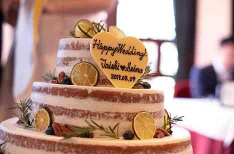 ウエディングケーキは、おふたりがこだわられたものの一つです。「旧クルペ邸」の雰囲気と季節感を考慮しながら、デザインや果物など、スタッフもおふたりと一緒に考えさせていただいた思い出深いケーキです。ライムをスライスし、少しだけ乾燥させてドライフルーツにしたものを使用したことで、アンティークな会場の雰囲気にもピッタリのケーキとなりました。