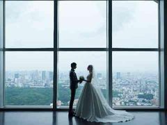 ウエディング当日は、たっぷりと時間をかけて、ホテル内の多彩なロケーションで写真撮影をおこないます。なかでも最上階に位置するレストラン ニューヨークグリルは人気の撮影スポット。大きな窓から望む壮大な景色は思わず息をのむほど。
