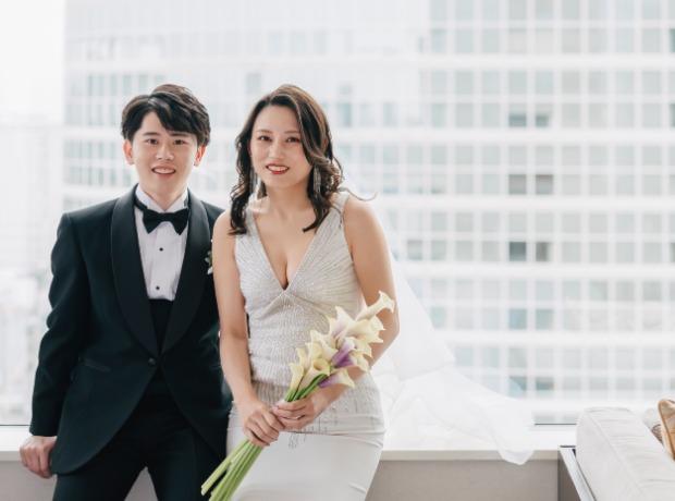 高層階にある会場は、大きな窓から都心の景色を一望でき、とても開放的で非日常を感じられる空間でした。 昼間は自然光が差し込み明るく、夜は美しい夜景が広がり、時間帯によって異なる雰囲気を楽しめました。 また、席の配置にも工夫があり、ゲストとの距離が近く、皆さんの表情をしっかり見ることができたため、温かみのある挙式にすることができました。