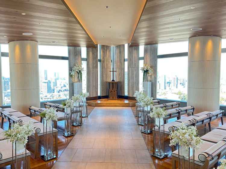 とても静かで落ち着いた雰囲気のホテルでした。 1日の挙式数も4件と少なめで、他の方と被ることなくゆったりと過ごせそうです。 高層階なのでチャペルや披露宴会場から見える景色も素敵でした。 待合場所では生演奏も聴けるようで魅力的です。
