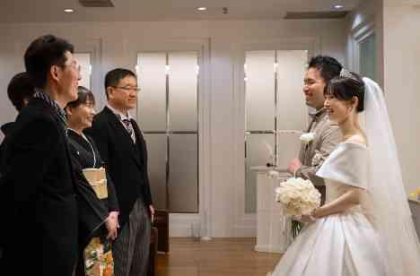 ゲスト皆様の前だとなかなか緊張して伝えられそうにない特別な存在である親御様への感謝。挙式の前には親御様へ一番最初に晴れ姿をお披露目し、ゆっくりとお話ししたりお写真撮影ができる時間を設けました。皆様の前ではお気遣いの多い親御様も、この時だけは大切なお子様の結婚式という特別な1日に浸っていただける瞬間です。