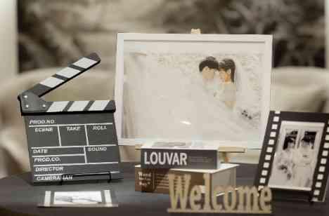 お二人共通のご趣味である映画鑑賞。映画のワンシーンのような結婚式にしたいというお二人は、前撮り撮影も実施。かつて銀行迎賓館であった白金迎賓館ならではの雰囲気のある写真を沢山撮影いただき、ウェルカムスペースに飾りつけていただきました。映画のワンシーンを感じる小物と合わせておしゃれな飾りつけで沢山のゲストにもお写真を残していただきました。