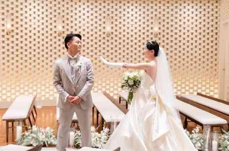 新郎新婦が結婚式当日にはじめてお互いの衣裳をご覧いただく「ファーストミート」。新郎がどんな反応をするのか、新婦がどんな反応をするのか互いに反応を確かめ合える。普通の結婚式場では味わうことの出来ない素敵なシーンを白金迎賓館アートグレイスクラブでは叶えることができる。チャペルでのご対面はたいへん人気の演出です。
