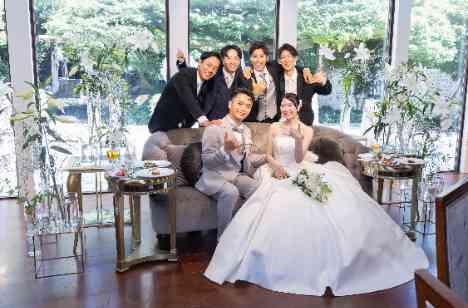たくさんの種類の中からお選びいただく空間コーディネート。今人気はソファメイン。白&グリーンの装飾と一緒に飾ればまるでガーデンと一体になっているよう。ゲストもお二人のもとへと向かいやすい点も好評。柔らかな日差しの中で美食と上質でナチュラルなひと時を愉しめる。都会の杜の「白金迎賓館アートグレイスクラブ」。