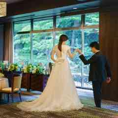 緑豊かな庭園を望む披露宴会場。