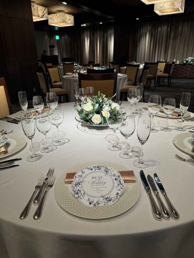 1日2組とのことで、ホテルながらプライベート空間のようで満足でした。茶色をベースとした会場は落ち着きがあり、上質さもありました。