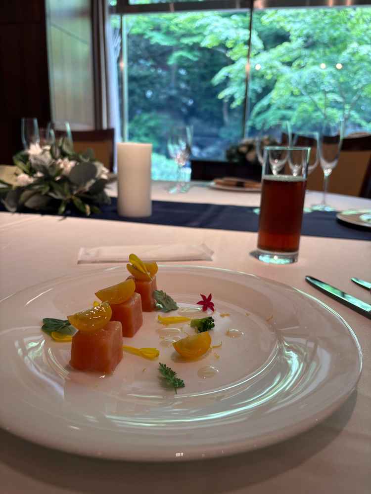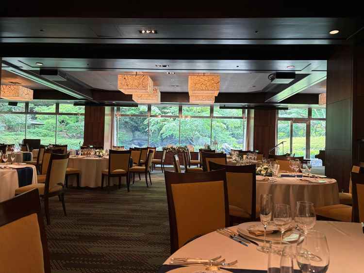 お外のお庭が見えて、自然がたくさんあるのは素敵だと感じましたが、披露宴会場の作りで、テーブルの位置がL字型になってしまうことがきになりました。